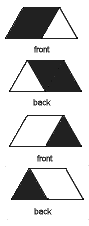 Games 100 selection, 1993 (here's the review.) ...Rombix consists of 16 tiles: four sizes of single rhombs that are the fundamental components of a 16-sided polygon, and twelve "twins" that are these four keystones joined in all possible concave pairs. (Did you know that any even-sided polygon can be cut up into rhombuses?) The elegant mathematics of this set will have it that these 16 tiles exactly fill the original polygon, called a circle. Thousands of arrangements are possible. The four colors are related by amazing proportions and congruences, and every successful tiling will also exhibit 8 ladders that span the circle's opposite sides. The booklet well documents, in layman's language, the many interesting paths of exploration Rombix invites. We make it in transparent tinted acrylics, in a black-framed 8½" tray. For 1 or 2 players, from mentally agile 12 to adult. |