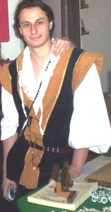 For many years, visitors were greeted by the friendly smile of "Sir" Fabian (above left), who also built much of the pavilion. He was greatly missed when he retired to Florida. Filling in during the 2004 season was the energetic Bjarne Viken (above right), a handsome "pirate" from Norway. After the season, the Kadon crew, in costume, celebrated an evening of dinner and horsemanship at Medieval Times. Here's the official group portrait.
