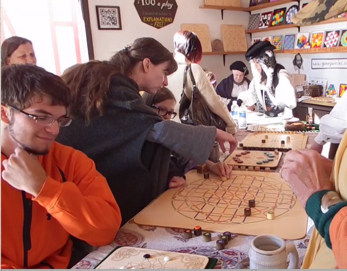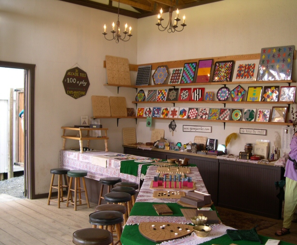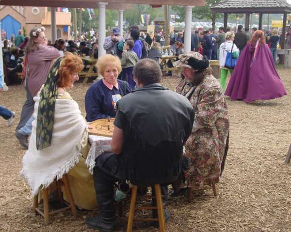Here's a typical scene of eager crowds at play with boardgames and puzzles. Many visitors arrive in costume to match the theme. |