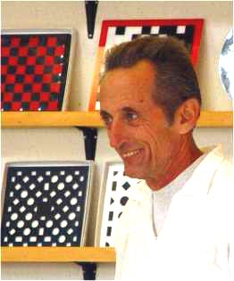 As Kadon's resident gamemaster for 30 years (he retired in 2013), Sir Richard was one of the most colorful and esteemed characters of the "village." Here he is again, in 1999, this time with longer hair and shorter beard, pondering a particularly strategic move. Note the now-finished stucco walls. At right, an even longer beard to approach the Gandalf look.