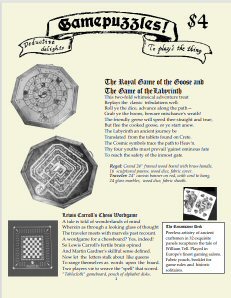 Mistress Eileen introduces a young visitor to the strategies of Tara, the game of Celtic knots. Eileen is a member of the Games Club of Maryland and the Baltimore Science Fiction Society and a most gracious hostess at the Gamery.