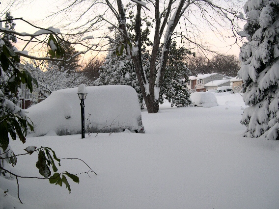 The first show, in Boca Raton, opened to 32 degrees and freezing rain. On Saturday the organizers called it quits at 1:30PM. Sunday was only slightly more bearable, cold but dry. We were warmed by the thought that the folks up north were getting frostbite shoveling snow. A big one smothered Maryland on February 6, dumping 23 inches in a few hours. A few days later, 20 more inches came down. Here's a view of the obliterated Kadon driveway, walkway and front yard. The lamppost acts as yardstick. (Photography by Dick Jones.) |