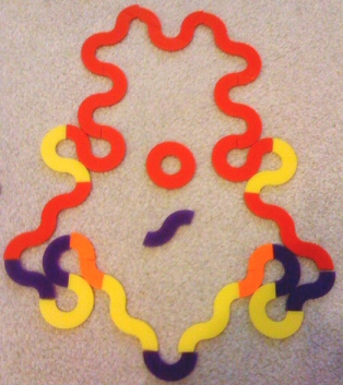 At Daniel's and his mom's request for something like train tracks, in 2008 we designed a brand new set of curvy puzzle pieces (polybends). Until its release in August 2009, we engaged Daniel for some hands-on beta testing, and mommy came up with seriously good solutions of her own.