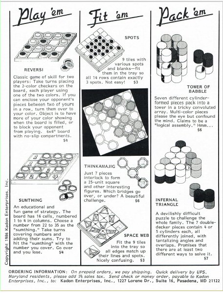 Gordon Bros. puzzles: 1986 catalog sheet |