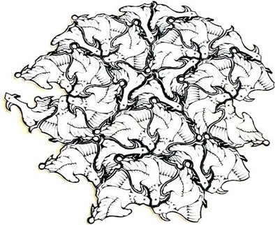This whimsical set of chicken-shaped tiles has two forms, transmogrified from the classic "kites" and "darts" found by Sir Roger Penrose to be the fewest number of different shapes to tile the plane nonperiodically. Roger held the world record for fewest shapes for many years, until 2023, when a team of four mathematicians, headed by David Smith, found a single shape, the OneSTone, also called "Spectre". Here is the shape of the "one stone":
