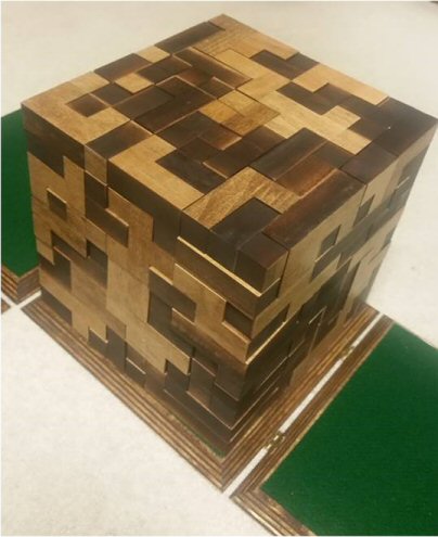An awesome assemblage of 166 different hexacube shapes plus 4 unit cubes. Notice the felt-lined fold-out hinged box it's resting on? That's the shape of one of the planar hexacubes. When you order, you can specify which of the 11 possible box dissections you would like yours to have. Translation: there are 11 ways to fold open a cube so that all six of its faces are still connected (shown in the diagram below). That's where we put the hinges. When folded around the cube, the last panel gets three padlocks on the ornamental hasps to hold the whole thing securely closed, looking for all the world like a treasure chest. It's the coolest.