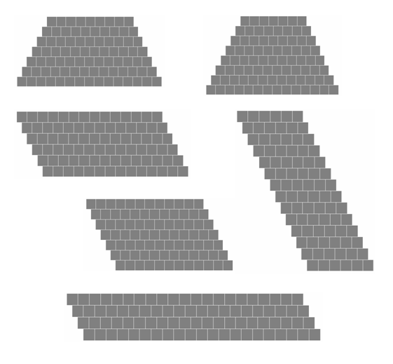 | Here's a solution to the last figure shownthe long wall that's a 4x21 parallelogram. The solution is not unique. We were aiming to separate the smaller pieces. Can you get them to cluster?