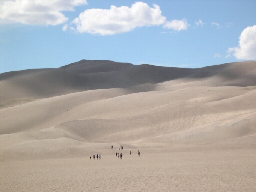 Detour to Colorado's Great Sand Dunes, 50 square km of sand eroded from the mountains and piled high by wind. Water removes, air returns.