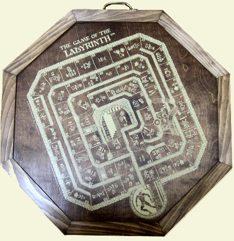 One hieroglyph represents the Celestial Goose who carries the traveler on her wings. Much strategic figuring comes into play because the two dice count separately, allowing a player to move two different pieces on a turn. Each player has four pawns here, not just one, and the winner is the one who first bears off all four at the center. The game's similarities to backgammon, Senet (the pharaohs' favorite game) and parchisi are more than a coincidence. Here are more detailed game rules: Introduction The first player to bear off all four travelers is the winner. The handbook for the Labyrinth game goes into great detail on the symbolism and mythology behind the hieroglyphs. Below we list only the basic actions. To play: At each turn, roll the two dice and move one or two of your pieces according to the numbers facing up, one field for each point for the full count of the die. Use each number separately: if you use both numbers for the same traveler, you must still land at the end of the first number and deal with its consequences before continuing with the second number. You may use the two numbers in any order. Landing on a penalty field traps the player, who must then fulfill the penalty before continuing. Landing on a benefit field allows the player to take advantage of any advance or boon before continuing with any remaining number. See the detailed descriptions of the fields for what to do when landing on certain spaces. Unless all your pieces are trapped, you must use both your numbers and move at least one of your travelers at each turn, be it only to return to the same field or to have two of your people switch places with each other. If one of your pieces cannot move forward the full number on a die because an exact count is required to arrive on a field ahead, step forward into that field and then one step backwards for each excess point on that die. This is permitted even if one of your other people could use the whole die to move forward. Except on sanctuary spaces, pieces do not share fields. If one arrives on an occupied field, that occupant goes to where the new arrival just came from, even if it is one of your own group. The Special Fields 1, 2, 3, 4, 5, 31 and 58.The helpful Celestial Goose. When you land on a field with the "Flock of geese a-flying" arrows, you get to use again the number of the last die which brought you on that field, and again as long as you land on a field containing the arrow, until you land on one without the geese. If you land on the geese while going backwards, continue going backwards by again your last die, until you no longer land on a field with geese. The Knight's Orbit. This series of connected fields moves forward along the track of 7-46-49-52-55-34 (they link like knight's moves on a chessboard) and back again. When you land on any of these fields, except for the trap in 52, you may take a free skyride. You get one free roll of a single die, if you choose to take it. Count its points forward along the track from wherever you enter it, touching down only on those fields, like a knight's move, not counting the spaces between. Reverse direction at the end of the line if you have excess points remaining on your free roll. If you fall into the trap at 52, take the one-way tunnel back to 7 and lose 2 turns. Field 1 You need to roll a 1 to enter a piece onto the first space. Fields 1 through 5 Any number of pieces may share these spaces. Field 6 Free passage. When you land here, advance your piece to 12. Field 7 The first field of the Knight's Orbit. If you choose, roll one free die and follow the sequence of knight's moves. Do not enter the one-way tunnel to 52. If your die count lands you on 52, that tunnel drops you back to 7. Field 13 An unlucky number; lose 2 turns. Field 18 Advance to 26. Field 21 Advance to 26. Field 31 The Passage through Initiation. You must arrive on field 31 by an exact count. Any number of pieces may occupy this field at the same time. If your die count overshoots the exact number needed, you enter 31 and then move the surplus number of steps backward. Field 34 Another entrance to the optional Knight's Orbit along the track 34-55-52-49-46-7 and back again. Field 42 Instead of doubling your move with the Goose symbol, advance to field 56. Fields 44-50 45-51 The Millstone. When you land on one of these fields, you may, if you wish, cross the Millstone diagonally. You may go from 44 to 50 or from 45 to 51, or reversed. This is a free move. You may then continue with any remaining number. Fields 46 and 49 You may take the Knight's Orbit, starting towards 34. Field 52 Lose two turns and then take the tunnel to field 7. (Want to try the Knight's Orbit again from there?) Field 58 You must arrive on field 58 by an exact count on the die. Exception: when the die roll of a player on field 60 exceeds the exact count needed to arrive on 61 and that player's traveler must back up to before 58 and happens to land on your field, you change places, and so you advance directly to the field that player started from, and you don't need to enter field 58. If, however, on a future turn you, too, overshoot 61 and must land back before 58, you must then roll an exact count of the die to enter 58 all over again. Any number of pieces may occupy field 58 at the same time. Field 59 Go back through the tunnel to 47. Field 61 Elysium. You must enter field 61 by exact count. Once arrived there, carry your traveler off the board. The first player to bear off all four pieces is the winner. |