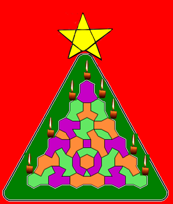 This year our BIRDS AND BEESTM represent our holiday wishes to you. As a cheerful Christmas tree, this puzzle created by Andy Liu shows its amazing symmetry formed of hexagons, squares, and equilateral triangles. Its many elegant figures invite both matched and separated colors, a delight to solve. See some samples here. May all your days be filled with joy and beauty. We send you our appreciation for your being in our world. Happy holidays, happy new year! May friendships ever brighten your life.