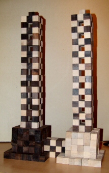 In November 2009 he built twin towers (at right), to dedicate them in memory of the 9/11 event. They used four complete sets of pentacubes.