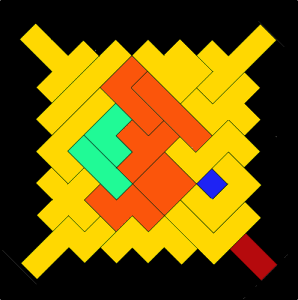 In April 2022, Teri Saunier posted this splendid solution on the Kadon Gamepuzzles® Universe Facebook page, with the trominoes and tetrominoes forming a double center line.