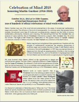 Kadon's lively and spacious gallery of playable art and recreational math puzzles, Ye Olde Gamery, once again hosted one of the many official events world-wide honoring Martin Gardner (October 21, 1914-May 22, 2010) on or around his birthday. Ye Olde Gamery is part of the nine-weekend-long Maryland Renaissance Festival in Crownsville, Maryland.