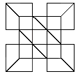 This ingenious puzzle was presented by Jerry originally to the International Puzzle Party in Prague in 2008, under the name "Prague Six." The challenge was simply to combine the 8 right isosceles triangles and 8 "sheds" to form 1, 2, 3, 4, 5 and 6 squares with a unique rule: each square had to be "traceable". All four sides had to be exposed, either on the outside or the inside, or a combination of the two. |