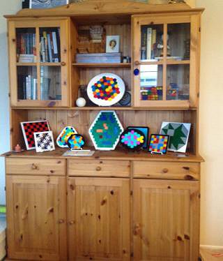 It always gives us a thrill to see how much our designs are appreciated and what a fine colorful display they make. David and his family always visit us at the big summer art festival in Pittsburgh to check out what's new and take home the next treasure. Notice the large wooden box in the top center compartment? That's our finest piece, the Super Deluxe Quintillions set.